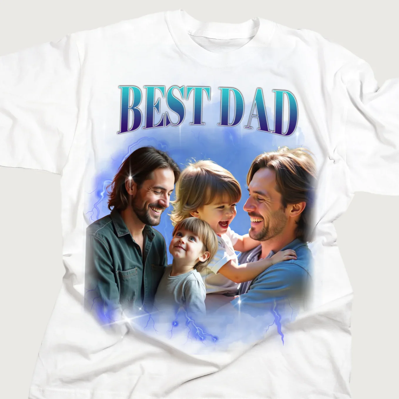 Gestalte dein Papa-Shirt mit eigenen Fotos! Das personalisierte Vintage Bootleg T-Shirt ist das perfekte Geschenk zum Vatertag oder Geburtstag. Jetzt