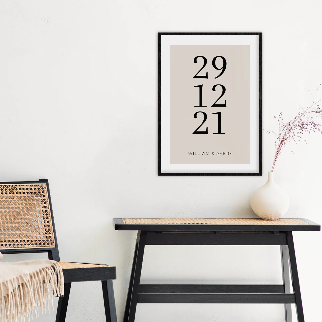 Create now your personalized couple poster "Our date" with your individual date. Perfect for you as a personalized gift for anniversary, Valentine's Day or even wedding. Personalize the poster simply with both of your names.